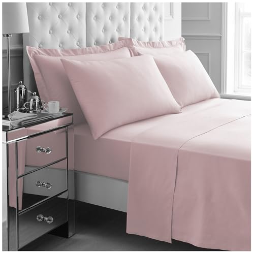 GC GAVENO CAVAILIA Kingsize Bed Sheet Set 4Pieces - 1x Fitted Sheet, 1x Flat Sheet & 2x Pillowcases 50x75 - Lightweight & Easy Care - Fitted Sheet Set Supersoft Polyester Bedding - Pink