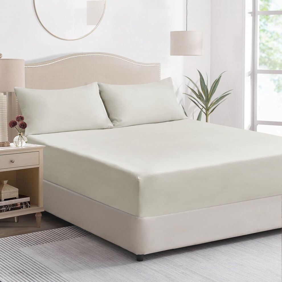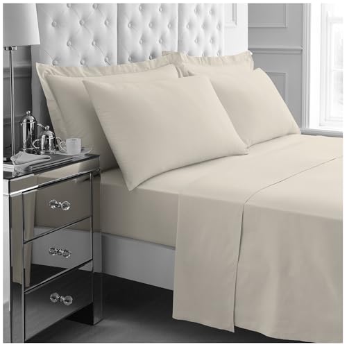 GC GAVENO CAVAILIA Kingsize Bed Sheet Set 4Pieces - 1x Fitted Sheet, 1x Flat Sheet & 2x Pillowcases 50x75 - Lightweight & Easy Care - Fitted Sheet Set Supersoft Polyester Bedding - Cream