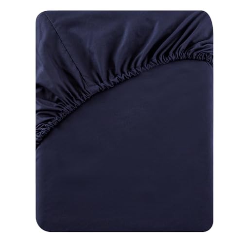 Soifox King Size Fitted Sheet Navy Blue - Bed Sheets with Extra Deep Pocket 16 inch (40 cm), Soft Microfiber Bottom Sheet for Kingsize Bed, 150x200cm