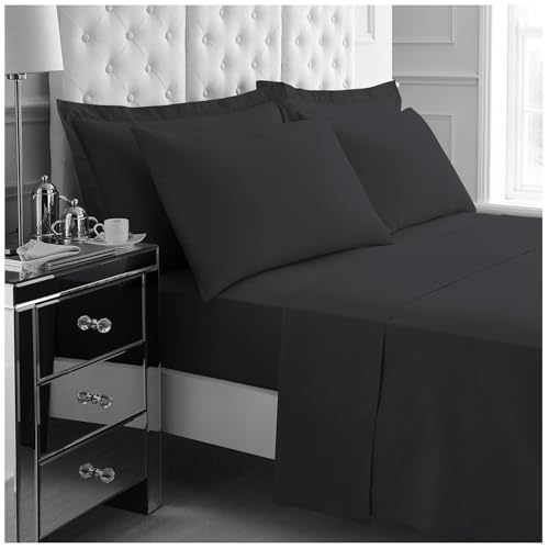 GC GAVENO CAVAILIA Kingsize Bed Sheet Set 4Pieces - 1x Fitted Sheet, 1x Flat Sheet & 2x Pillowcases 50x75 - Lightweight & Easy Care - Fitted Sheet Set Supersoft Polyester Bedding - Black