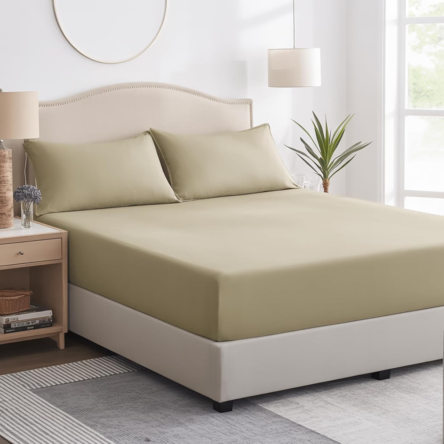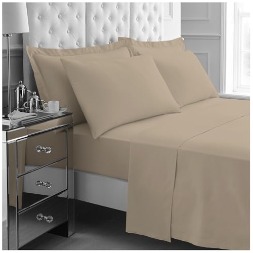 GC GAVENO CAVAILIA Kingsize Bed Sheet Set 4Pieces - 1x Fitted Sheet, 1x Flat Sheet & 2x Pillowcases 50x75 - Lightweight & Easy Care - Fitted Sheet Set Supersoft Polyester Bedding - Natural