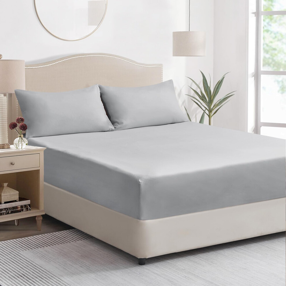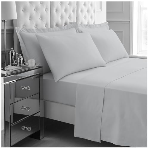 GC GAVENO CAVAILIA Kingsize Bed Sheet Set 4Pieces - 1x Fitted Sheet, 1x Flat Sheet & 2x Pillowcases 50x75 - Lightweight & Easy Care - Fitted Sheet Set Supersoft Polyester Bedding - Grey