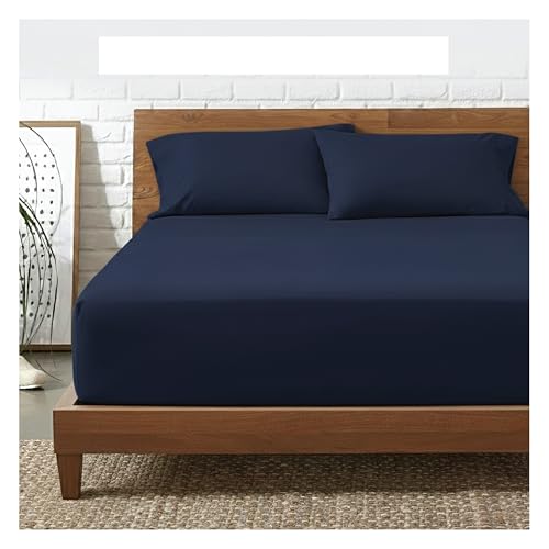 ComfyWell Kingsize Fitted Bed Sheet - Deep Pocket 14 inch (35 cm) - Soft Brushed Microfibre Fabric Navy Bedding - Shrinkage and Fade Resistant. (King (150x200cm), Navy Blue)