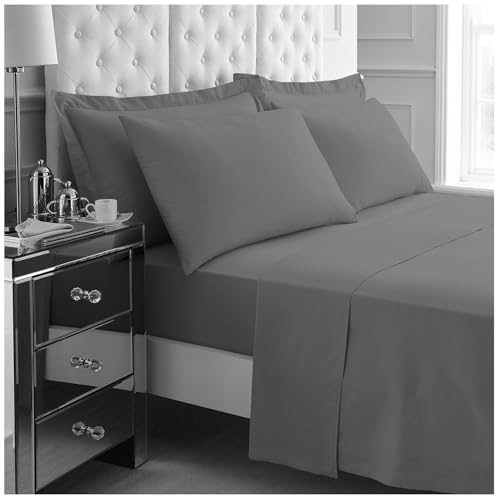 GC GAVENO CAVAILIA Kingsize Bed Sheet Set 4Pieces - 1x Fitted Sheet, 1x Flat Sheet & 2x Pillowcases 50x75 - Lightweight & Easy Care - Fitted Sheet Set Supersoft Polyester Bedding - Charcoal