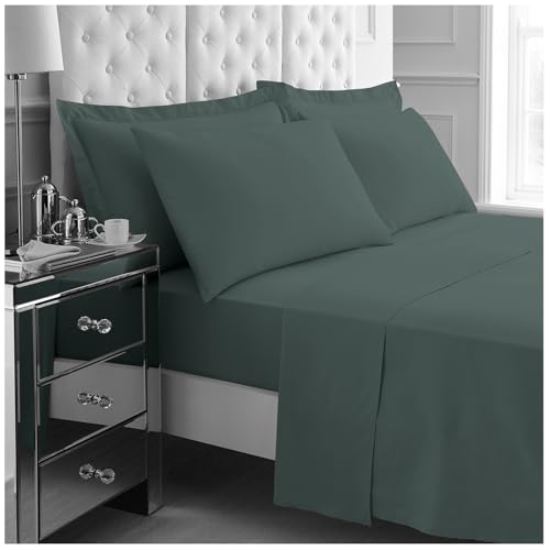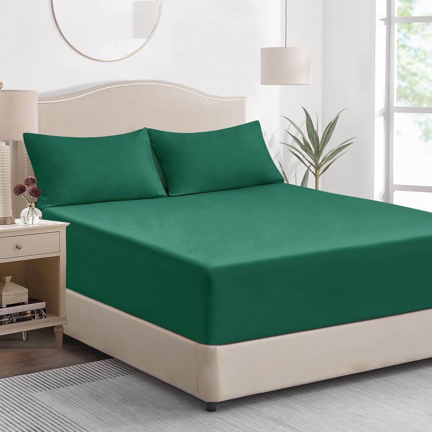 GC GAVENO CAVAILIA Kingsize Bed Sheet Set 4Pieces - 1x Fitted Sheet, 1x Flat Sheet & 2x Pillowcases 50x75 - Lightweight & Easy Care - Fitted Sheet Set Supersoft Polyester Bedding - Dark Green