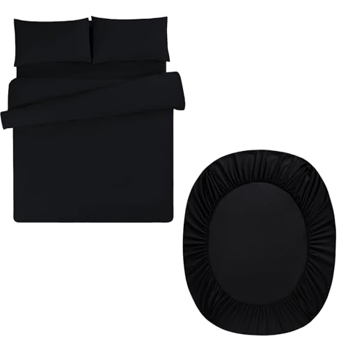 Aisbo King Duvet Set with Sheet - Black 4 Pieces Microfiber Bedding Set for Kingsize Bed, Includes Duvet Cover, Fitted Sheet and Pillowcases