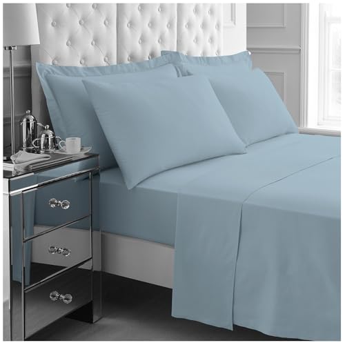 GC GAVENO CAVAILIA Premium Quality Plain Dyed Flannelette Flat Sheet, Luxury 100% Brushed Cotton Easy Care, Soft & Cosy Bed Linen, Blue, kingsize Bedsheet, King,424147