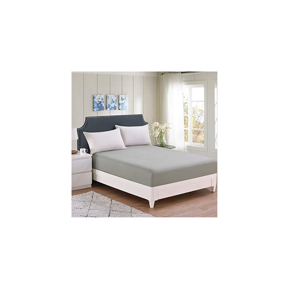 Family Bedding King Size Fitted Sheets Deep Fit | Fitted Bottom Sheet King Jersey Cotton | Deep Pocket Fitted Sheet King | Bedsheet For Kingsize Bed (King, Grey)