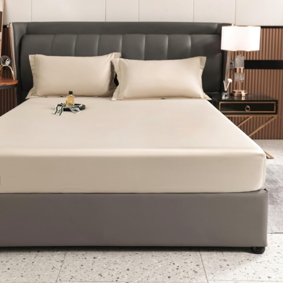 Soifox King Size Fitted Sheet Cream - Bed Sheets with Extra Deep Pocket 16 inch (40 cm), Soft Microfiber Bottom Sheet for Kingsize Bed, 150x200cm
