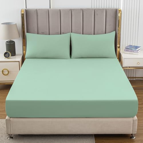Soifox King Size Fitted Sheet Sage Green - Bed Sheets with Extra Deep Pocket 16 inch (40 cm), Soft Microfiber Bottom Sheet for Kingsize Bed, 150x200cm