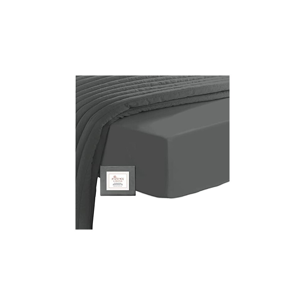 Pizuna 100% Cotton King Size Fitted Sheets Dark Grey, 400 Thread Count Long Staple Cotton Kingsize Fitted Bed Sheets 150x200 cm, Sateen Weave 40 cm Deep Fitted King Size Sheet 1 PC