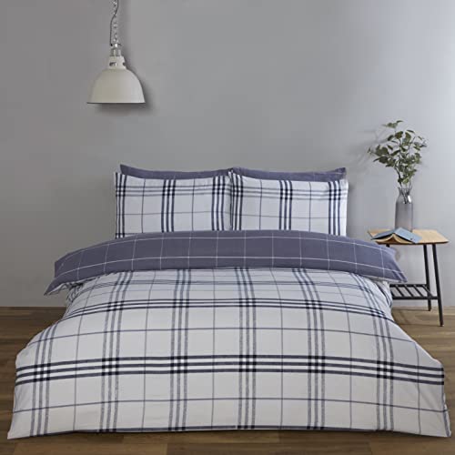 Rapport Home Harris Check Microfibre Grey Kingsize Duvet Cover Set - 180 TC reversible Duvet Cover Set
