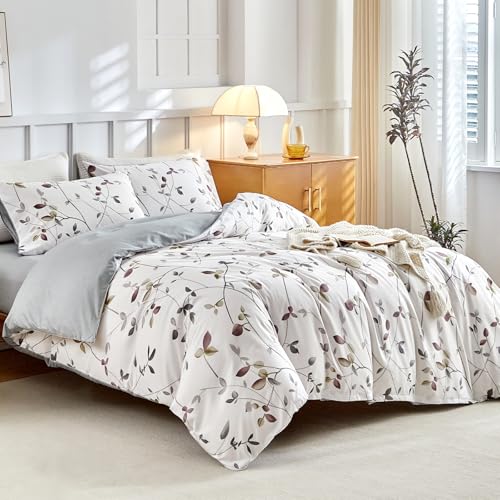 Tokokimo King Size Duvet Cover Sets White Bedding Sets, Botanical Branches Printed 4PCS King Size Bedding Sets White (1x Duvet Cover, 2x Pillowcases, 1x Fitted Sheet) Microfiber Kingsize Duvet Set