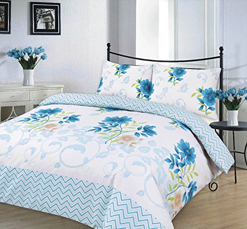 Kampala Hill Bethany Blue Super Kingsize Duvet Cover Set Polycotton Floral Bedding
