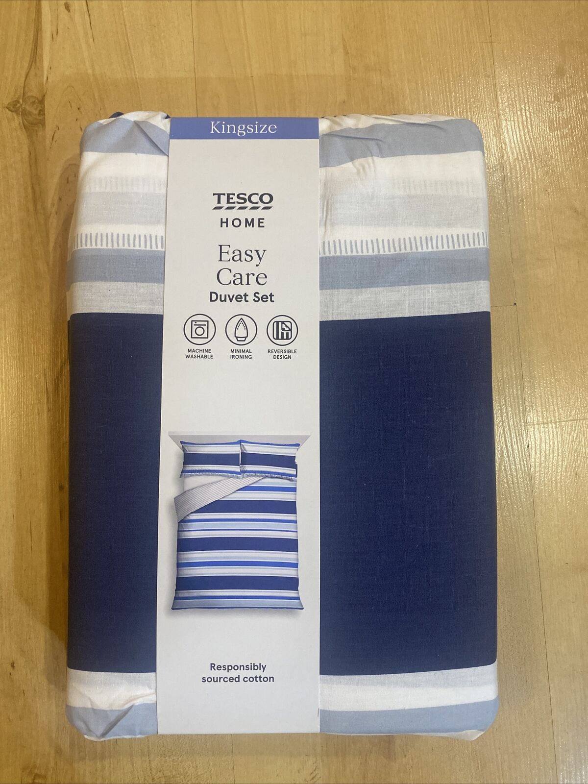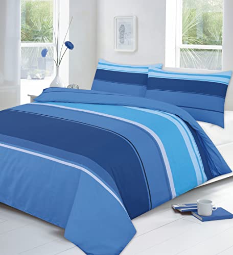 EASY CARE KINGSIZE DUVET SET REVERSIBLE BLUE STRIPES 230x220cm