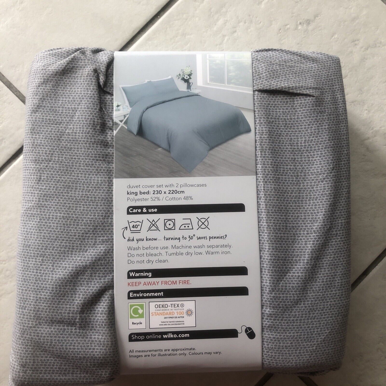 Easy Care Kingsize Duvet set & 2 Pillowcases - Reversible 230X220cm Blue Grey