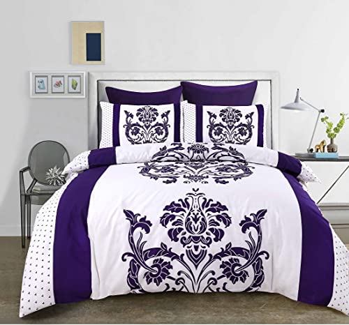 Kampala Hill Darcy Plum Super Kingsize Duvet Cover Set Polycotton Damask Bedding