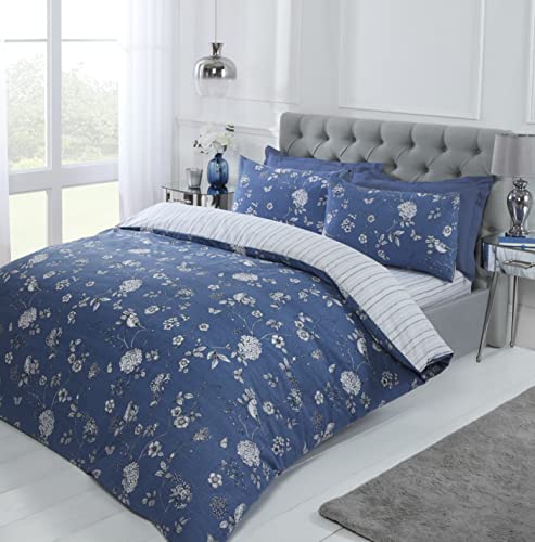 Kampala Hill Bethany Blue Kingsize Duvet Cover Set Polycotton Floral Bedding