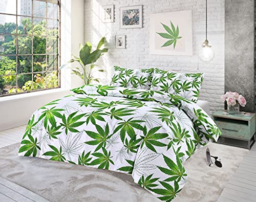 Kampala Hill Cannabis White Super Kingsize Duvet Cover Set Polycotton Dope Bedding