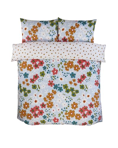 Rapport Home Betty Kingsize Duvet Cover Set – Vintage-Inspired Bedding with Vibrant Daisy Motif, Multicoloured Design & Polka Dot Reverse, Soft & Easy Care