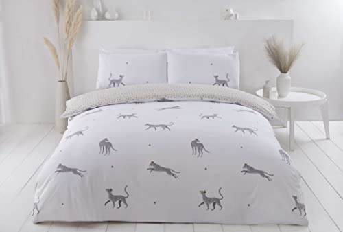 Rapport Home Sustainable Kingsize Duvet Cover Set – Eco-Friendly Reversible Leopard Print White Bedding Set, Soft Easy Care Fabric, Stylish and Durable 3-Piece Quilt Cover