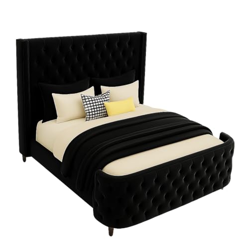 Atomic Sleep Luxury Curved Winged-Bed Frame - Upholstered in Plush Velvet Fabric with Mattress/Gas Lift Option - UK Made (Black Plush, KingSize with mattress)