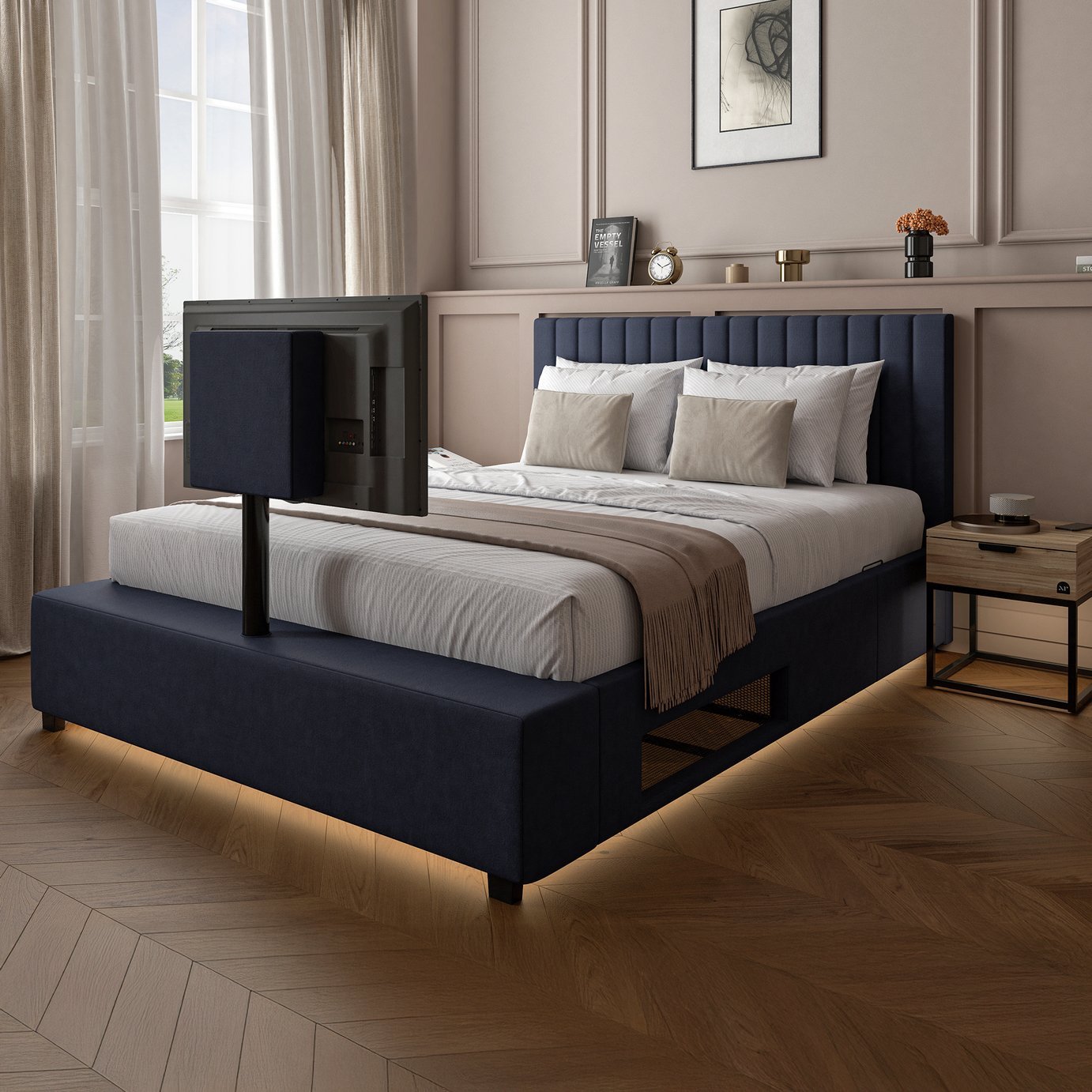 XR Living Maisie Kingsize Side Lift TV LED Ottoman Bed- Navy