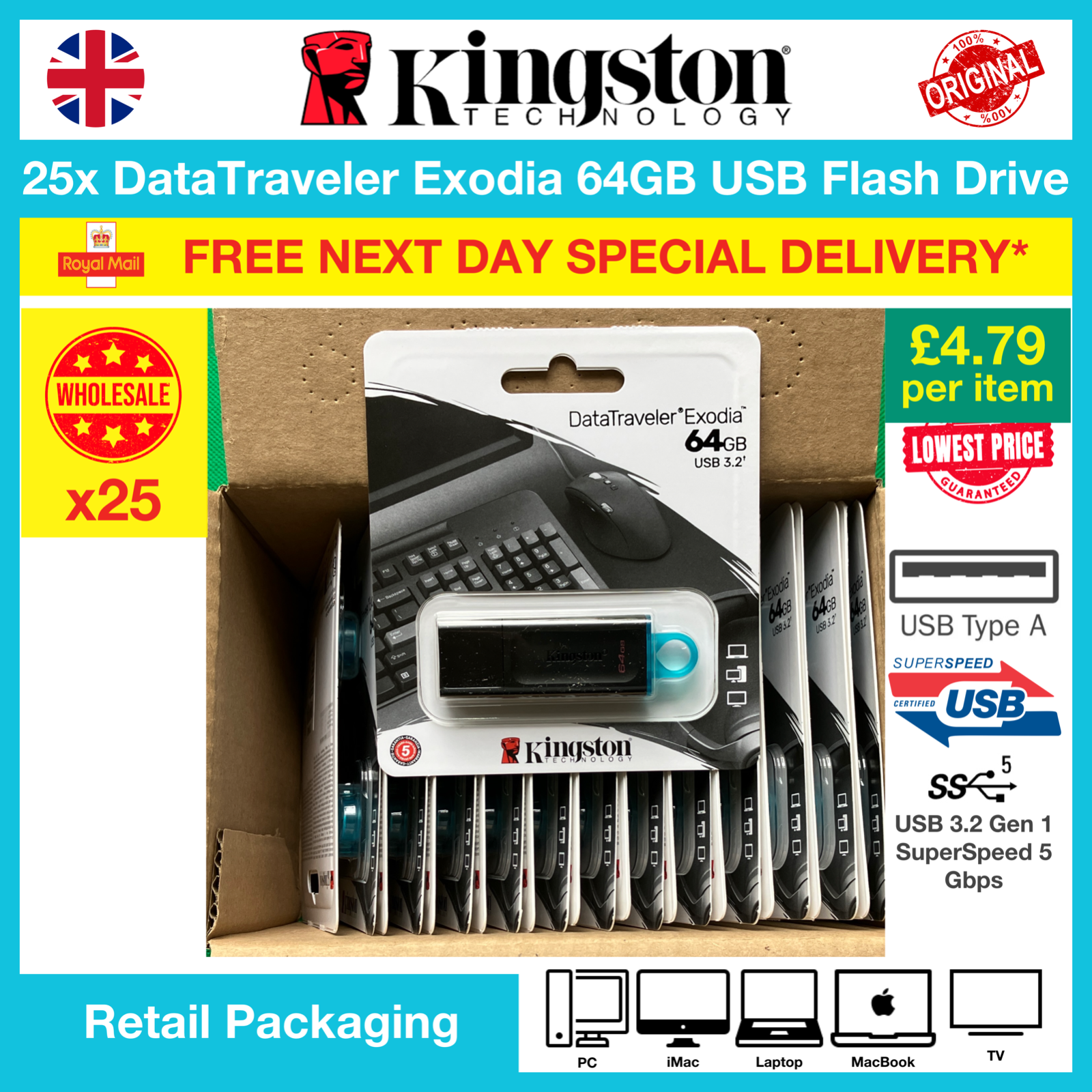 25x Kingston DataTraveler Exodia 64GB Memory Stick USB 3.2 Flash Drive, DTX/64GB