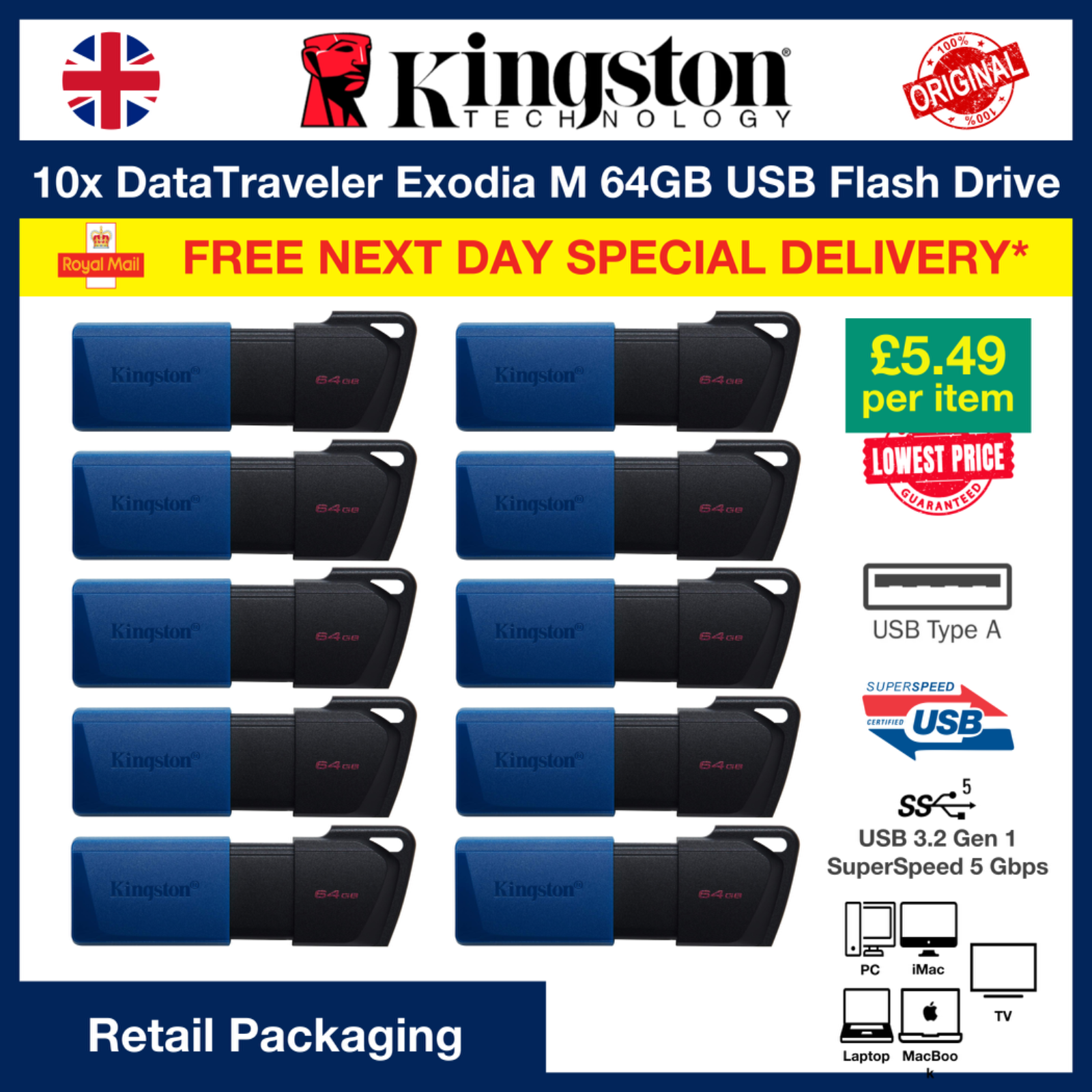 100x Kingston DataTraveler Exodia M 64GB USB Memory Stick, Wholesale, Bulk, Lot