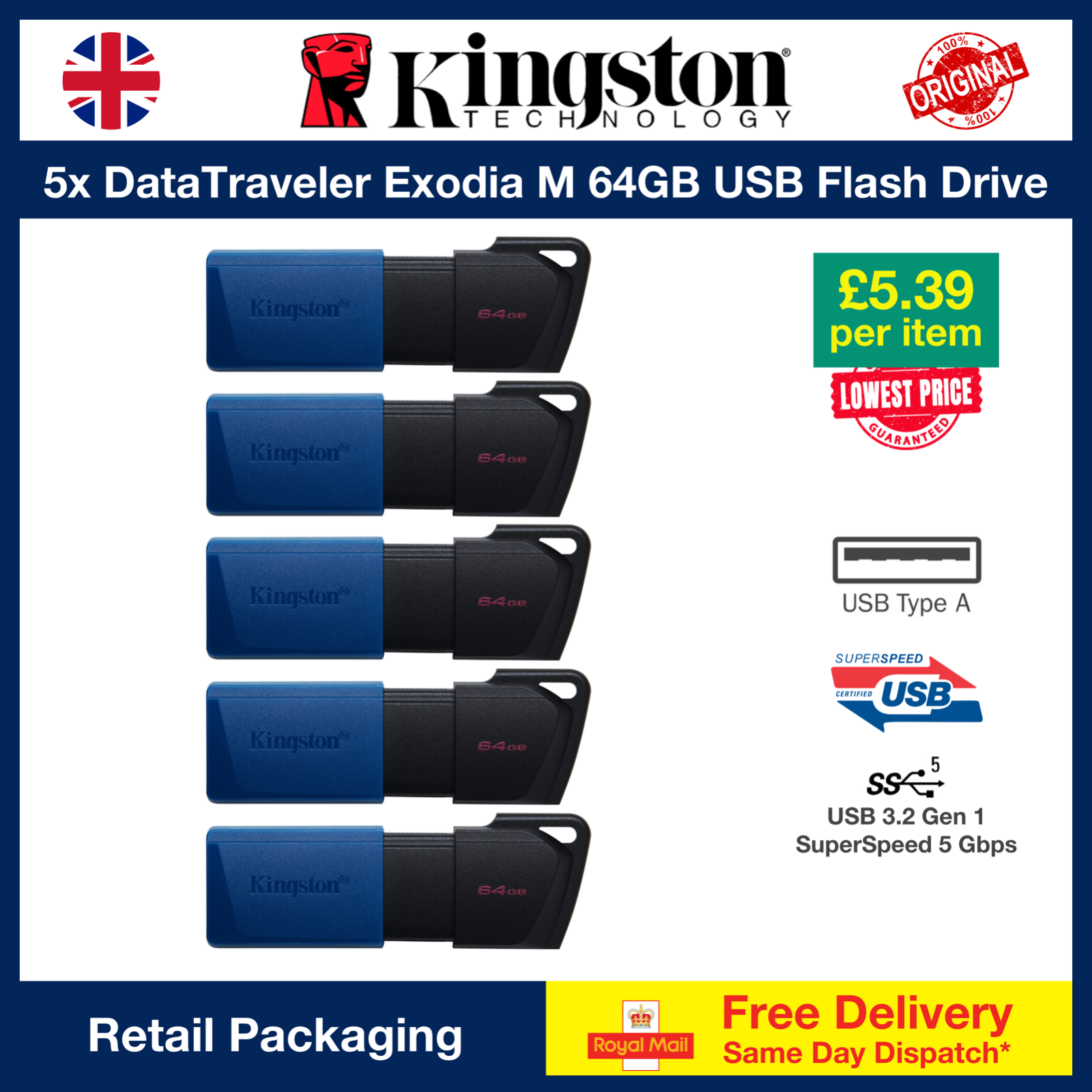 5x Kingston DataTraveler Exodia M 64GB USB Flash Drive, USB 3.2 Gen 1, DTXM/64GB