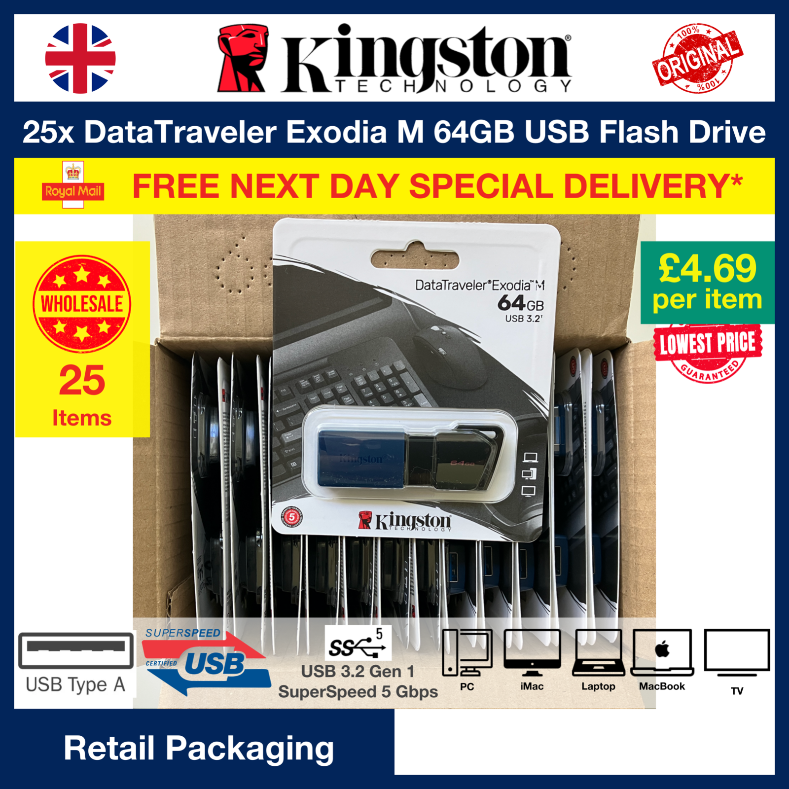 25x Kingston DataTraveler Exodia M 64GB USB Flash Drive, USB 3.2, Wholesale, Lot