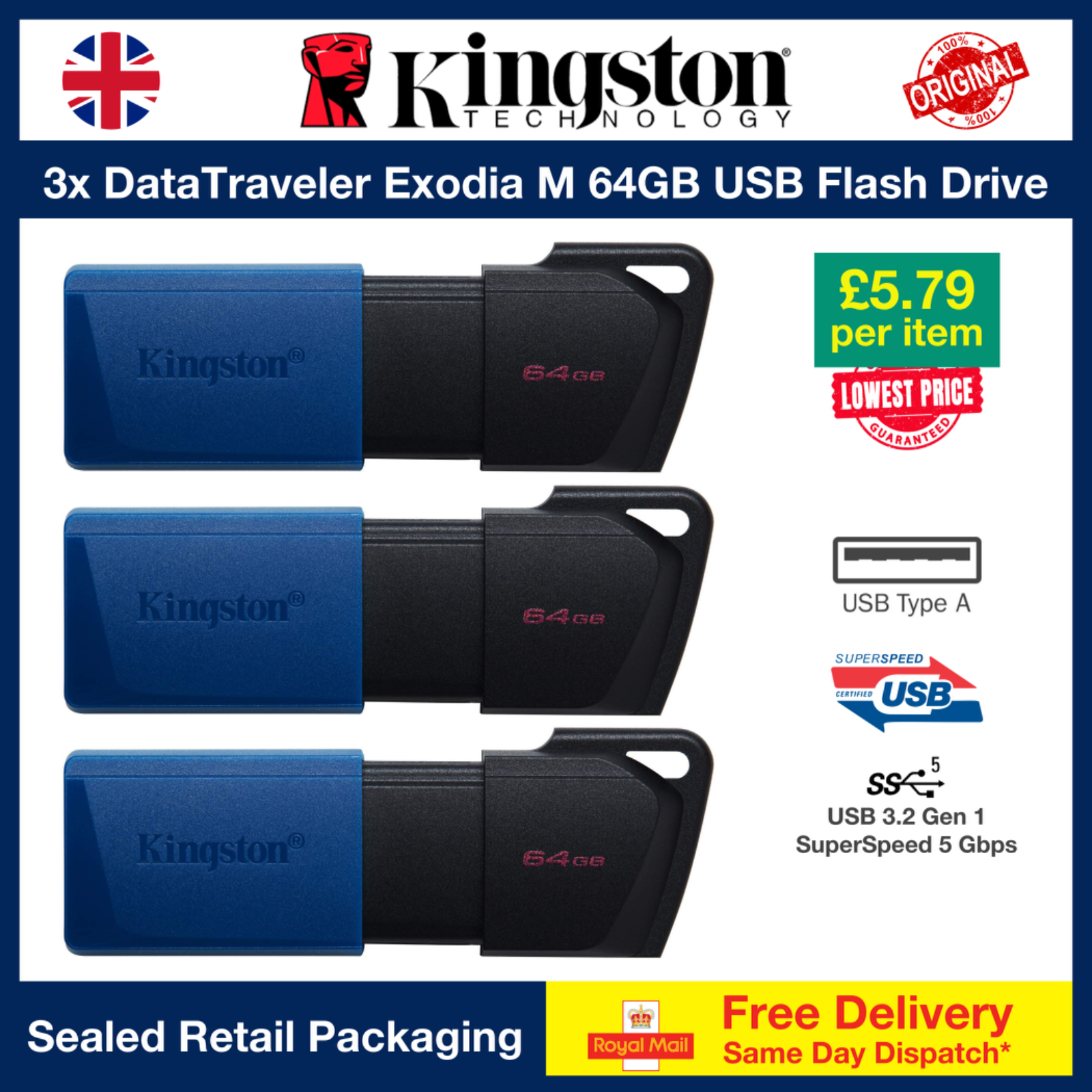 3x Kingston DataTraveler Exodia M 64GB USB Flash Drive, FREE DELIVERY