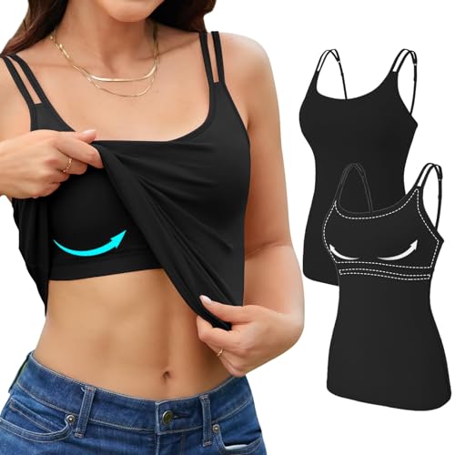 V FOR CITY Womens Camisole with Built in Bra Vest Basic Tank Top Yoga Tops Going Out Ladies Clothes 2 Pack S