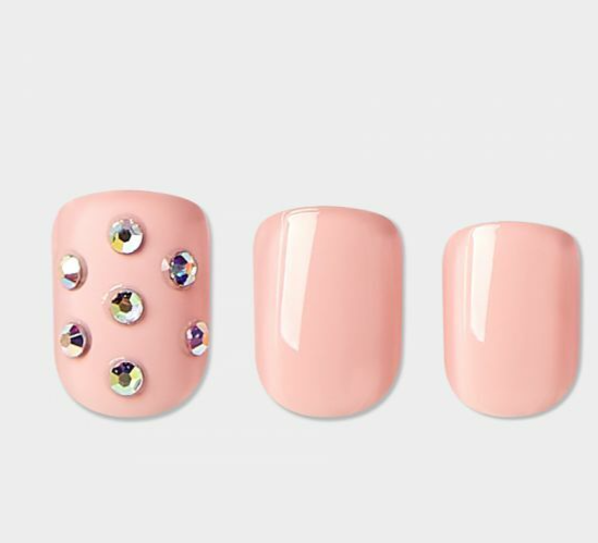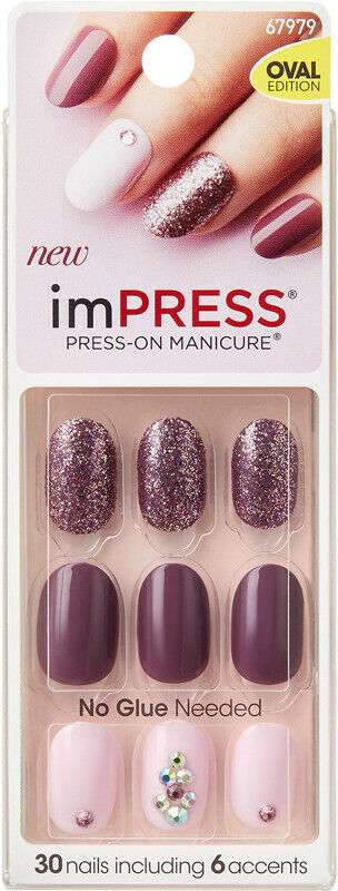 KISS IMPRESS PRESS ON NAILS ONE STEP MANICURE CURIOUS MIND PINK FACETED ACCENTS