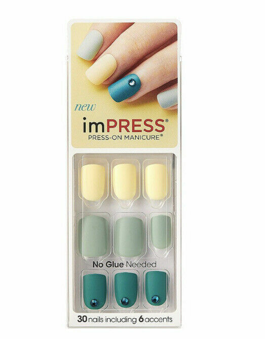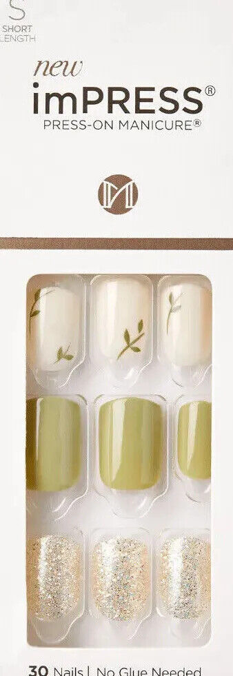 KISS IMPRESS PRESS ON NAILS ONE STEP MANICURE SPRING IS COMING GREEN & GLITTER
