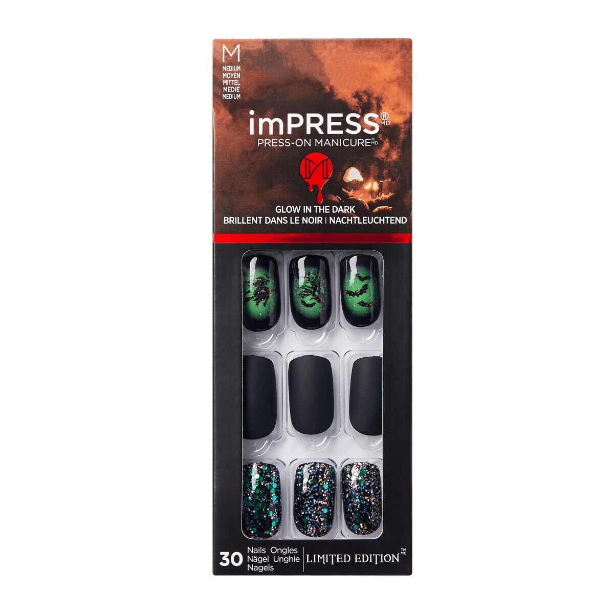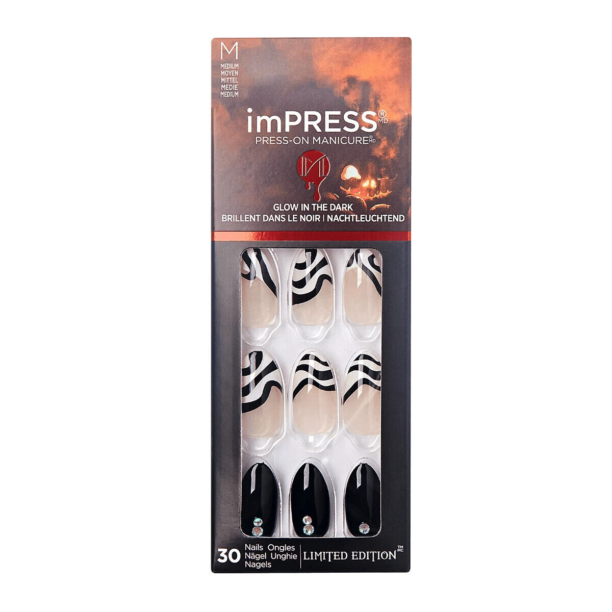 KISS IMPRESS PRESS ON NAILS ONE STEP MANICURE LIVING DEAD HALLOWEEN MEDIUM