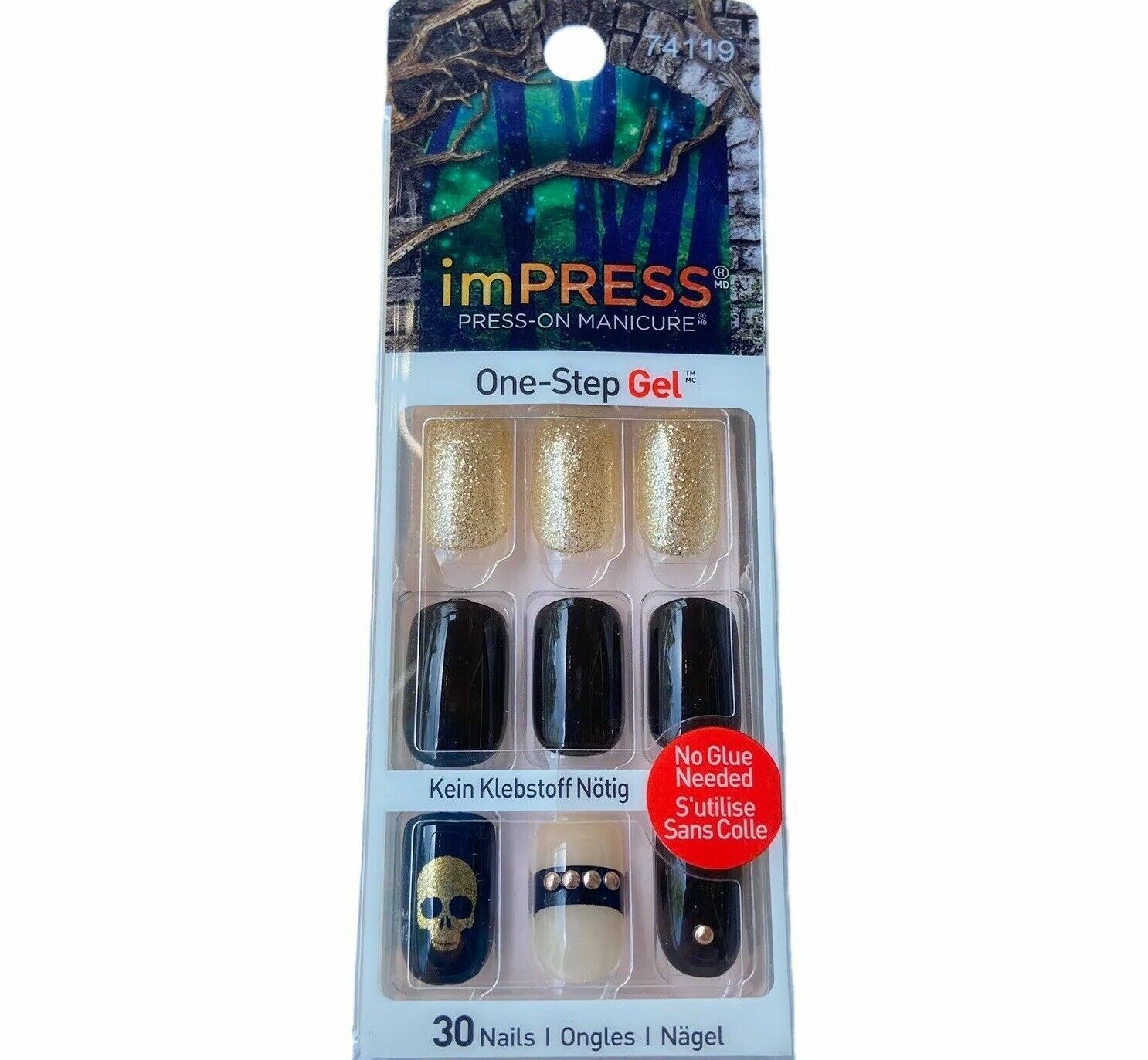 KISS IMPRESS PRESS ON NAILS ONE STEP MANICURE NEW HALLOW-QUEEN MEDIUM LENGTH