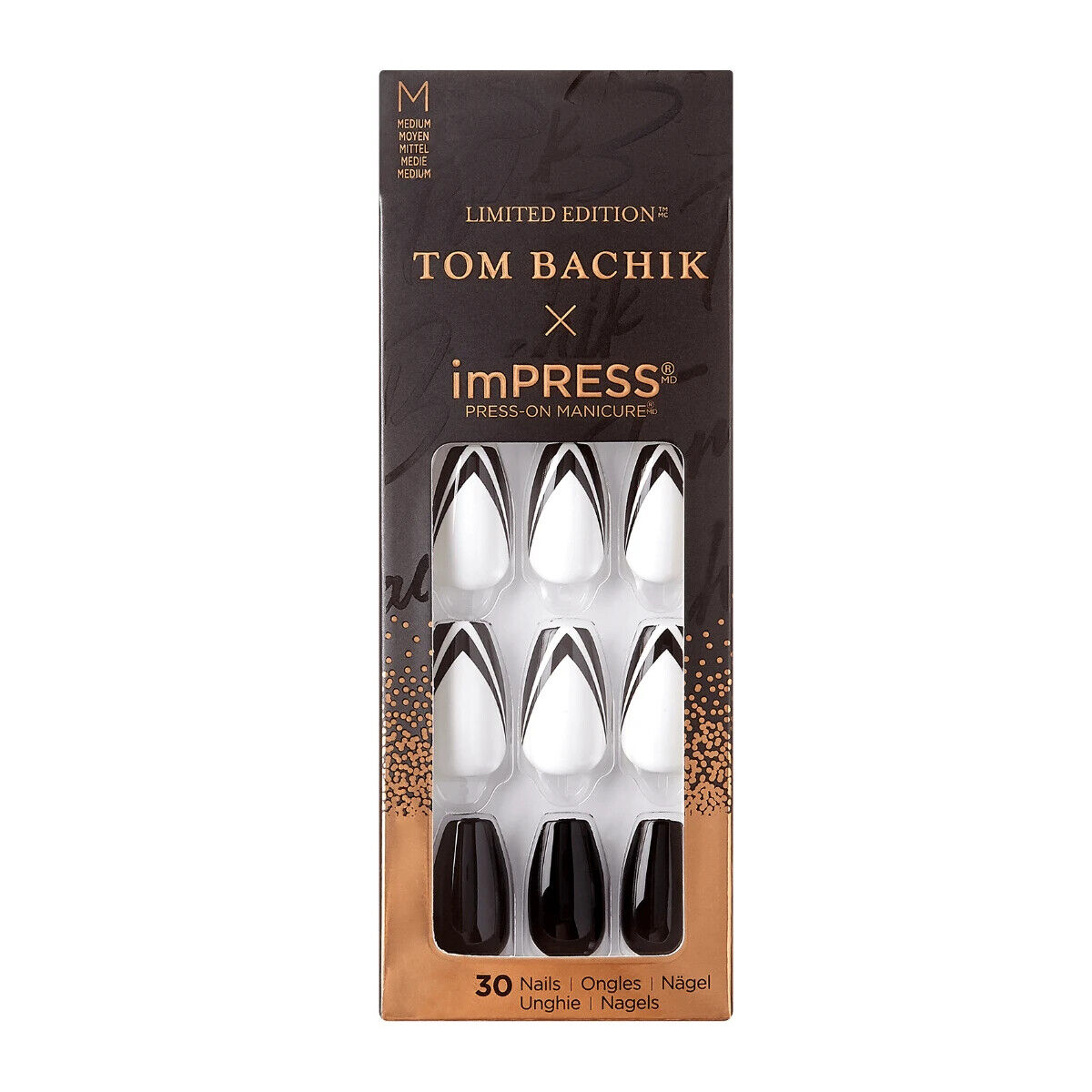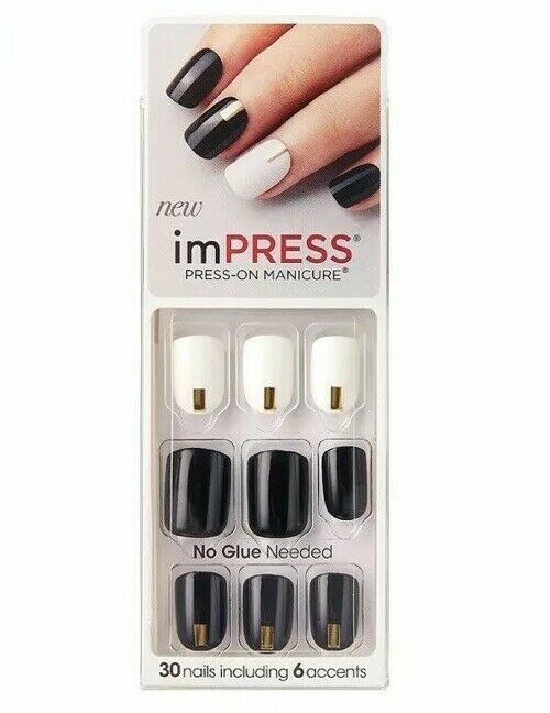 KISS IMPRESS PRESS ON NAILS ONE STEP MANICURE NEW TUXEDO NIGHTS MEDIUM LENGTH