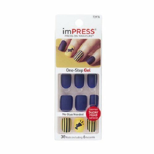 KISS IMPRESS PRESS ON NAILS ONE STEP MANICURE PASSION MATTE NAVY with ACCENT NEW