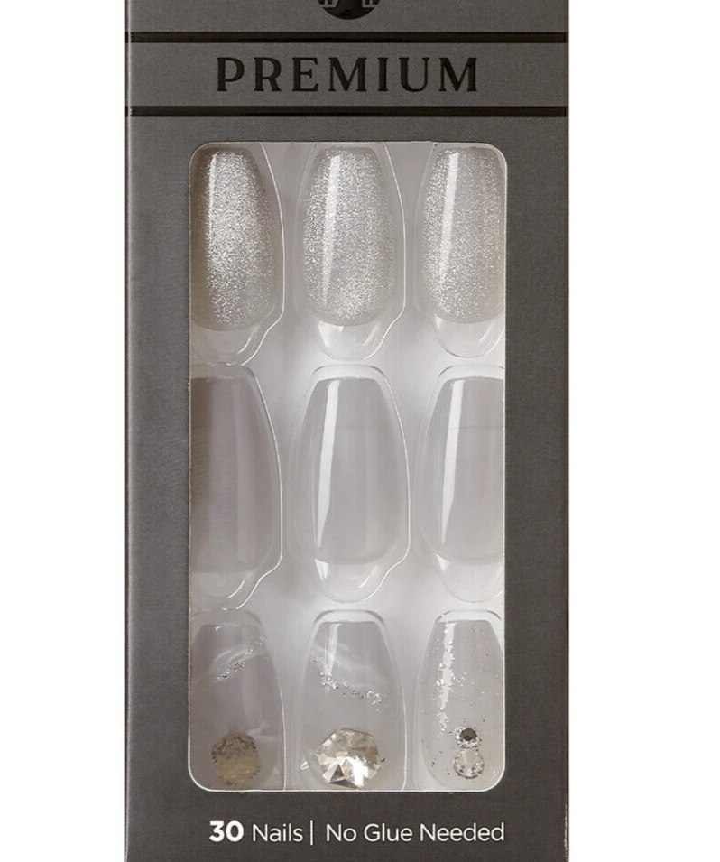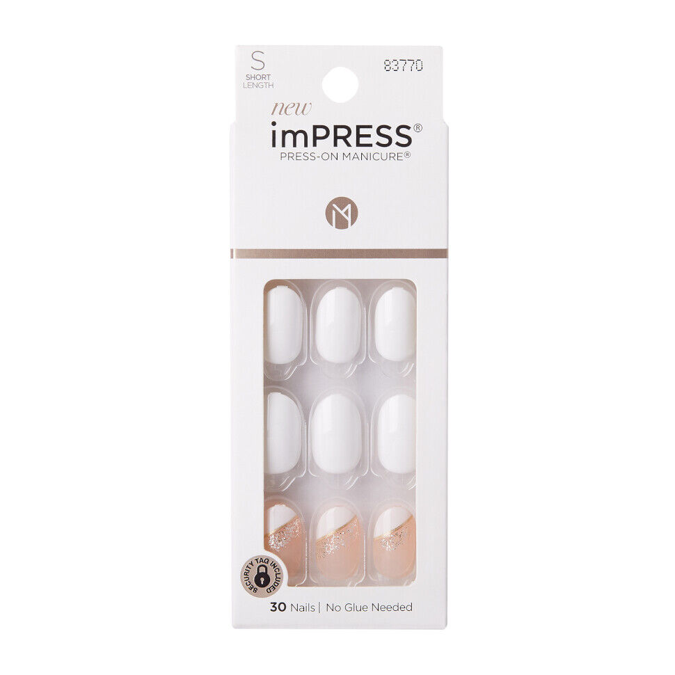 KISS IMPRESS PRESS ON NAILS ONE STEP MANICURE NEW PREMIUM ICE CRYSTALS SHORT
