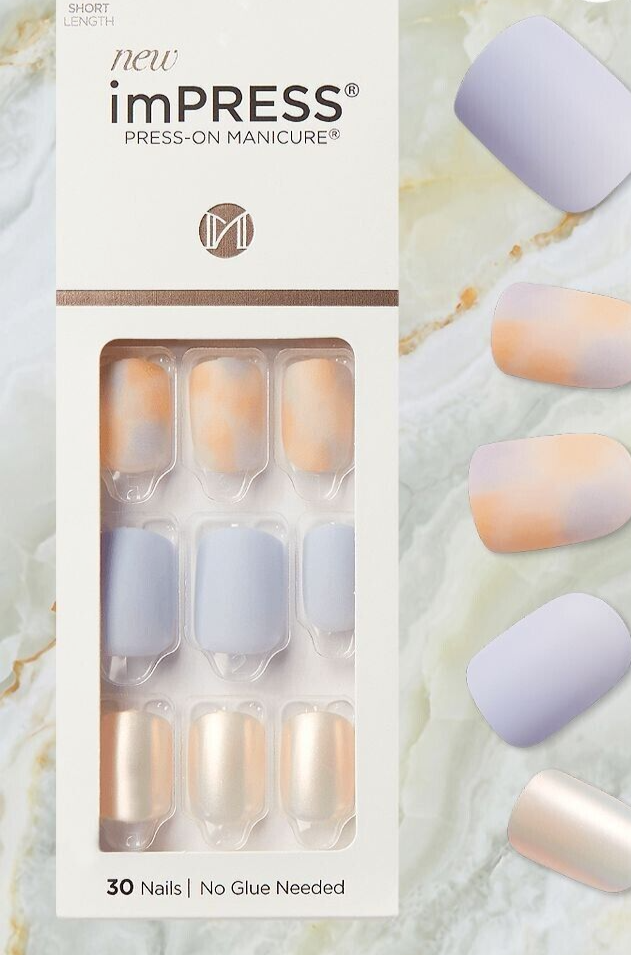 KISS IMPRESS PRESS ON NAILS ONE STEP MANICURE GOAL DIGGER PINK, LILAC IRIDESCENT