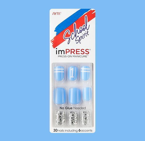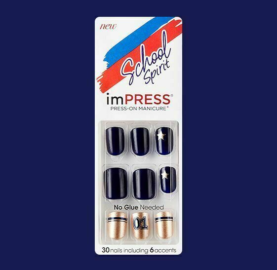 KISS IMPRESS PRESS ON NAILS ONE STEP MANICURE SCHOOL SPIRIT RIVALRY MATTE BLUE