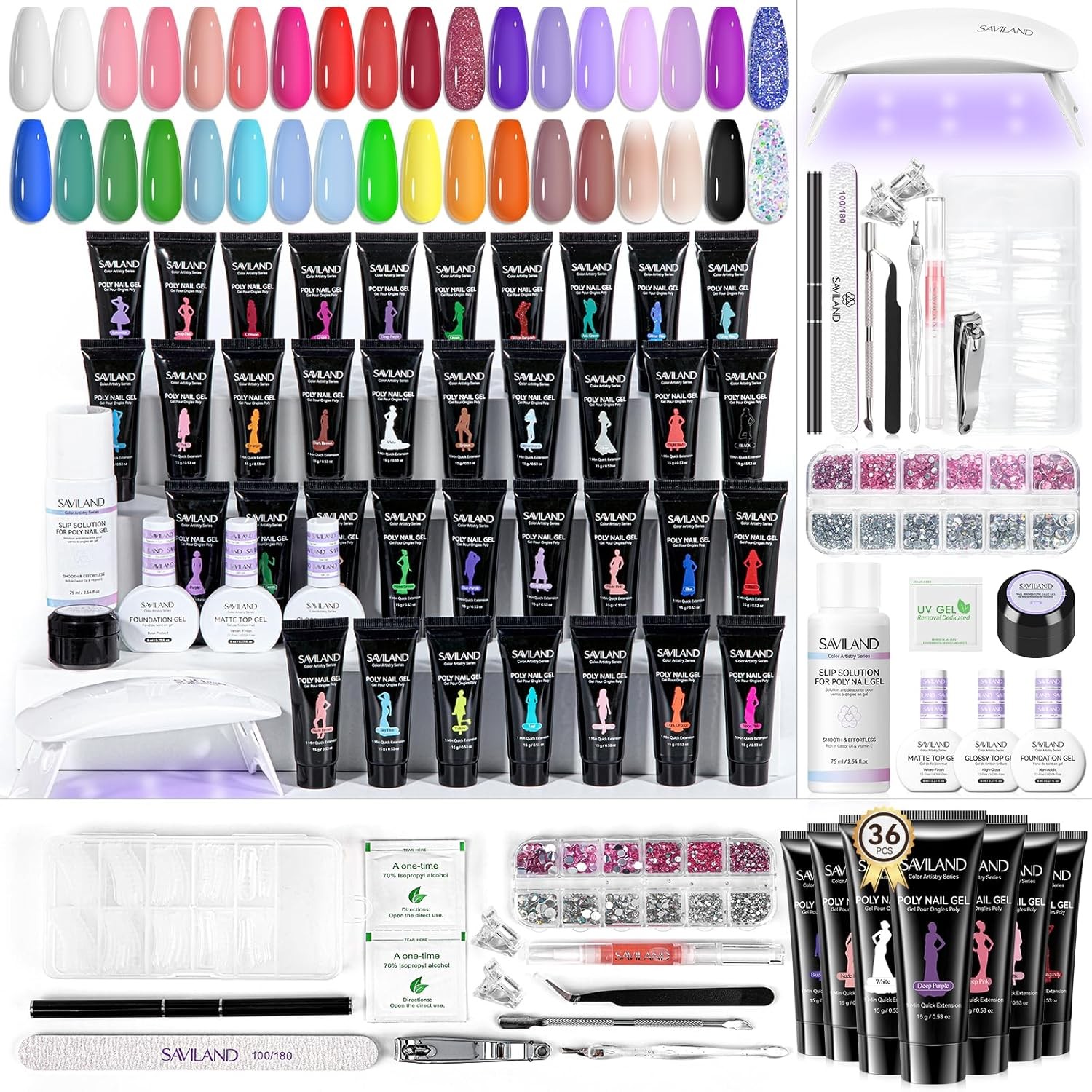 SAVILAND Color Artistry Glow & Go Poly Nail Gel Kit: 36 Vivid Colors Polygel Na