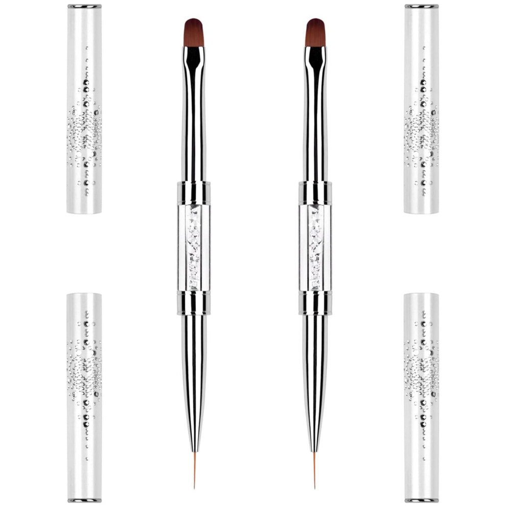 2PCS Professional French Tip Nail Brush Set with DualEnded Gel Nail Art Brushes for Builder Gel and Polygel