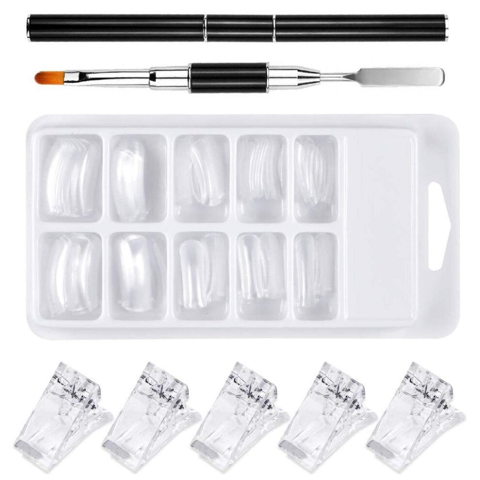 Professional Manicure Tools, Clear Gel Nail Extension Dual Nail Form Set for Polygel, Reusable Nail Molds with Dual-ended Gel Brush, for Salon And