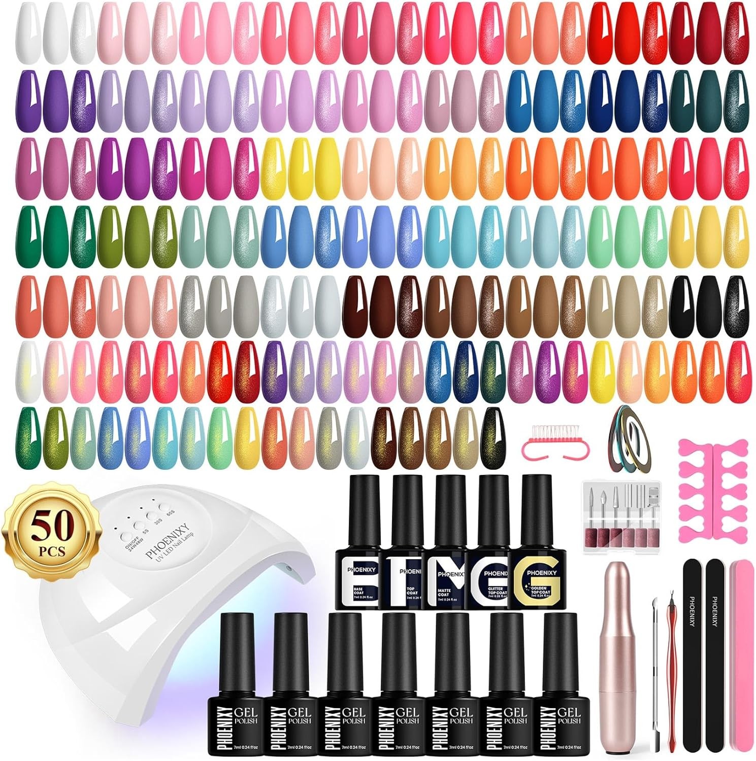 PHOENIXY 66Pcs Gel Nail Polish Set with U V Lamp and Drill, 45 All Sealons Colo