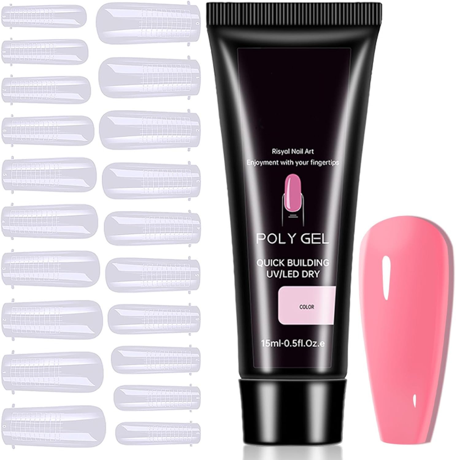 Clear Nail Tips, Polygel Nail Tips, Quick UV Nail Builder Kit, Plastic Manicure Tools for Polygel (