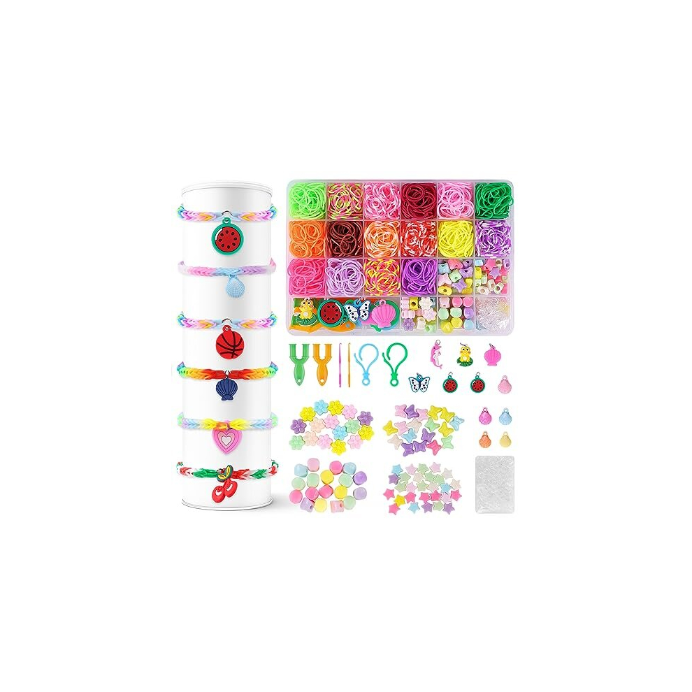 Automatic Bracelet Making Kit - BANDAI - Rainbow Loom Shop - Contains 4000 Elastic Bands, Beadmojisâ¦