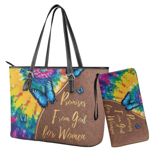 Nittanovaca Butterfly Printed Shoulder Handbag with Purse Set Womens Tie Dye Handbag Sets Satchel Purse Waterproof Leather Top Handle Totes with Matching Wallet