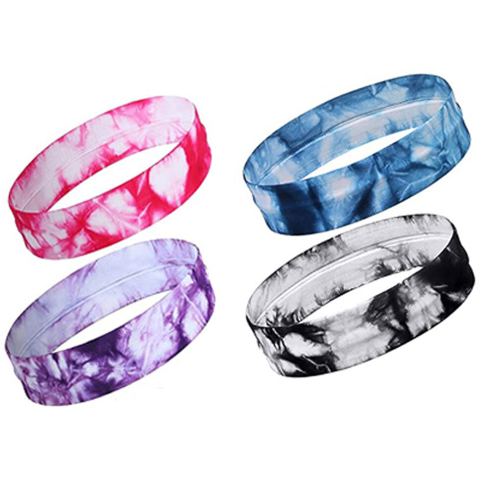 ARTIBETTER 4pcs Women’s Wide Sweatbands Sports Headbands Set, Tie-dye Athletic Hairbands for Yoga Fitness and Outdoors, Breathable Cloth Hair Accessories